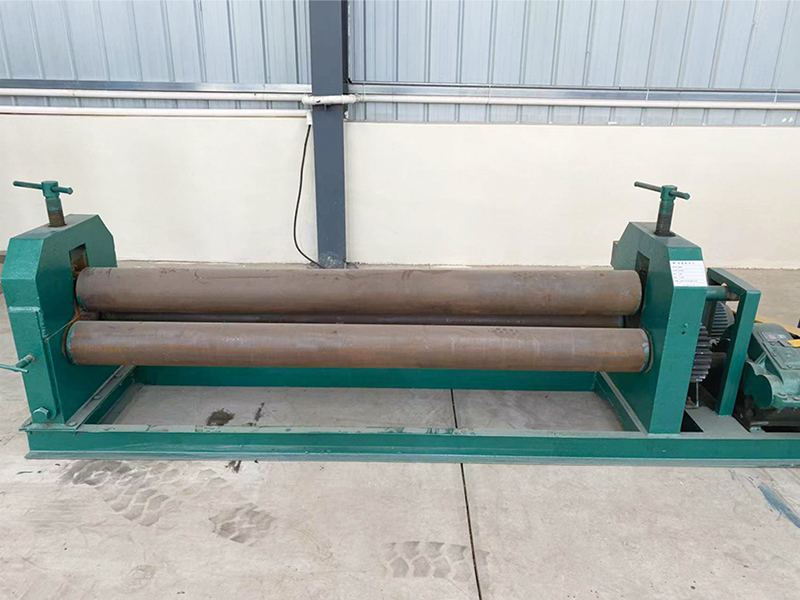 簡(jiǎn)析卷板機(jī)的工作原理及應(yīng)用范圍卷板機(jī)是對(duì)板料進(jìn)行連續(xù)點(diǎn)彎曲的塑形機(jī)床,具有卷制O 同的形狀卷板機(jī)規(guī)格平整的塑性金屬板通過(guò)卷板機(jī)的三根工作輥(二根下輥、一根上輥) 之間,借助上輥的下壓及下輥的旋轉(zhuǎn)運(yùn)動(dòng),使金屬板經(jīng)過(guò)多道次連續(xù)彎曲(內(nèi)層 壓縮變形,中層不變,外層拉伸變形),產(chǎn)生塑性變形,卷制成所需要 的圓筒、錐筒或它們的一部分。 卷板機(jī)的工作原理是卷板機(jī)上輥在兩下輥中央對(duì)稱位置通過(guò)液壓缸內(nèi)的液壓油作用于活塞作垂直升降運(yùn)動(dòng),通過(guò)主減速機(jī)的末級(jí)齒輪帶動(dòng)兩下輥齒輪嚙合作旋轉(zhuǎn) 運(yùn)動(dòng),為卷制板材提供扭矩。借助上輥的下壓及下輥的旋轉(zhuǎn)運(yùn)動(dòng),使金屬板經(jīng)過(guò) 多道次連續(xù)彎曲,產(chǎn)生塑性變形,卷制成所需要的園筒、錐筒或它們的一部分。